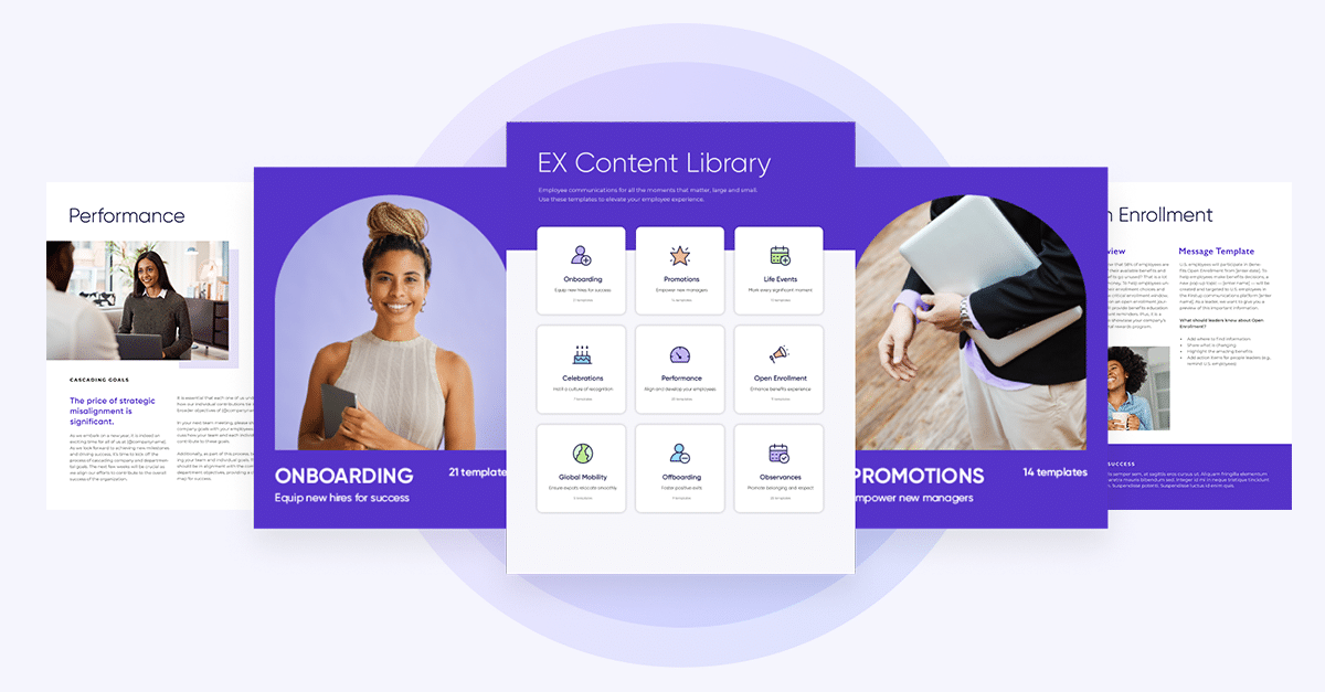 An EX Content Library is a one-stop shop for resources and templates designed to facilitate effective communication with employees throughout their journey within your company.