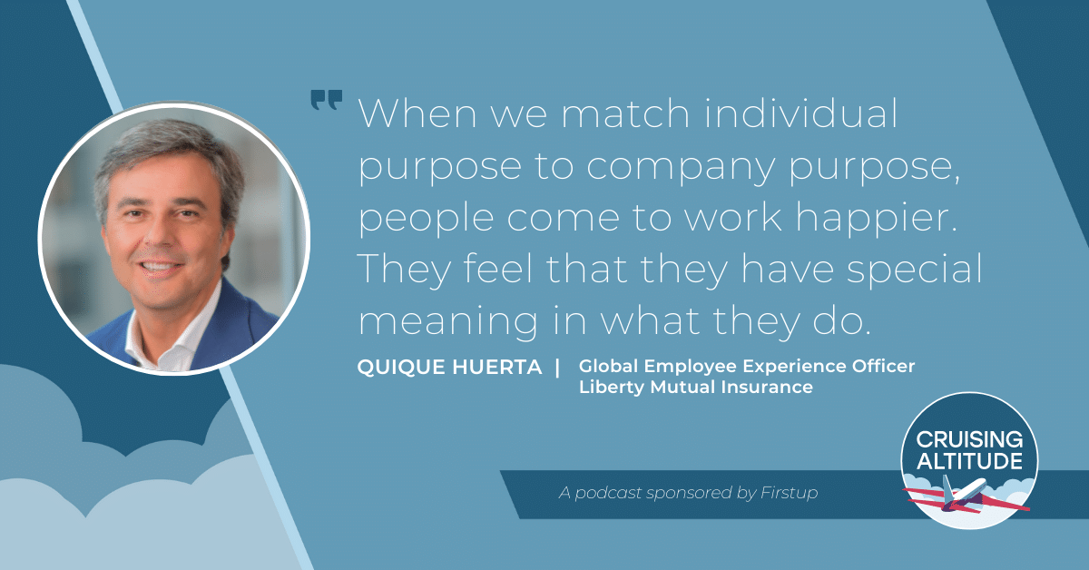 Quique Huerta is the Global Employee Experience Officer at Liberty Mutual Insurance. Quique has led the Global Employee Experience group since its inception in early 2020. He is responsible for keeping the pulse on how employees are feeling and leading the creation of amazing employee experiences. In this episode, Quique discusses identifying the moments that matter to employees, the importance of challenging the status quo, and aligning employee purpose with the company vision.
