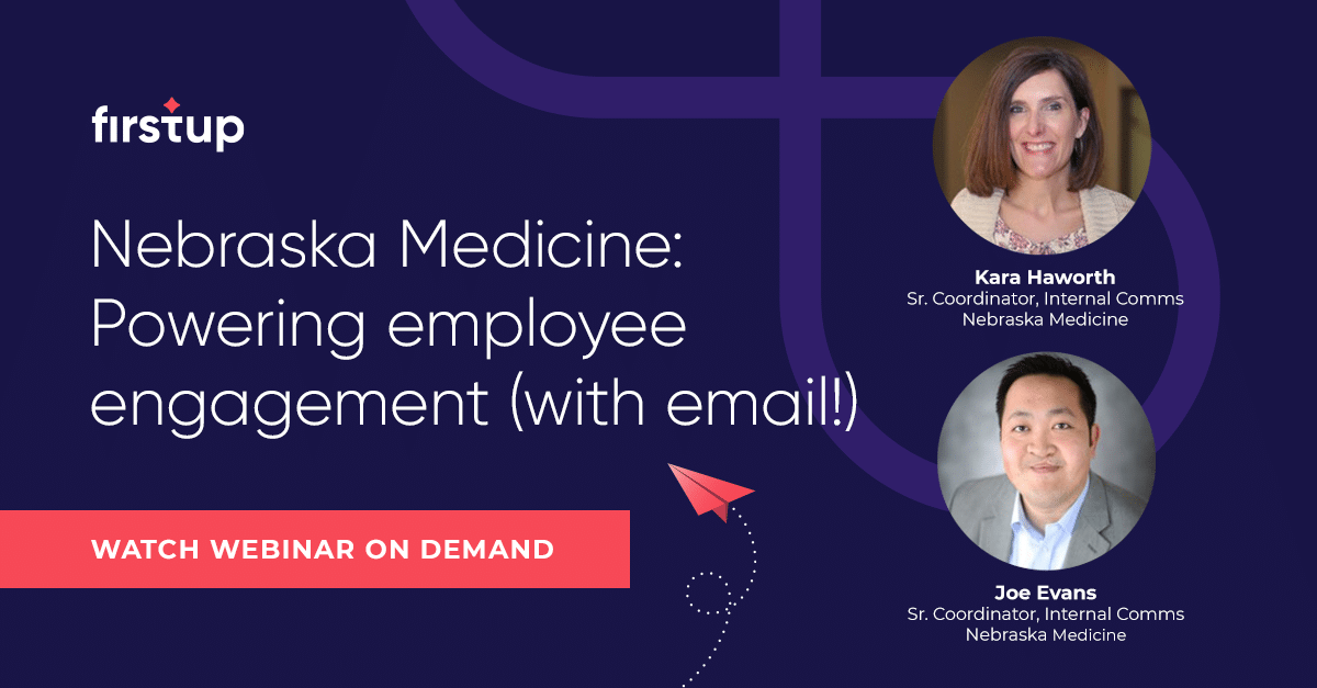 A big thank you to Kara Haworth and Joe Evans from Nebraska Medicine and be sure to watch the on-demand webinar to learn how they are putting employee communication and engagement first, along with the tips and tricks they learned on the way that can help your organization do the same.