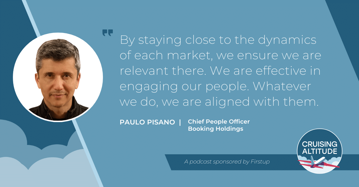 Paulo Pisano is Chief People Officer at Booking Holdings, the world’s leader in online travel that includes several brands including Booking.com, Priceline, and RentalCars.com. At Booking Holdings, he heads the people agenda for their 20,000 employees. In this episode, Paulo discusses how to present a strong value proposition to hook great talent, how he tunes in to each of their markets, and how to provide a consistent employee experience globally.
