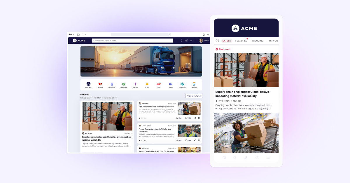 - Mobile-First for Frontline Workers: Native iOS and Android applications optimized specifically for deskless workers, enabling engagement and connection from anywhere.