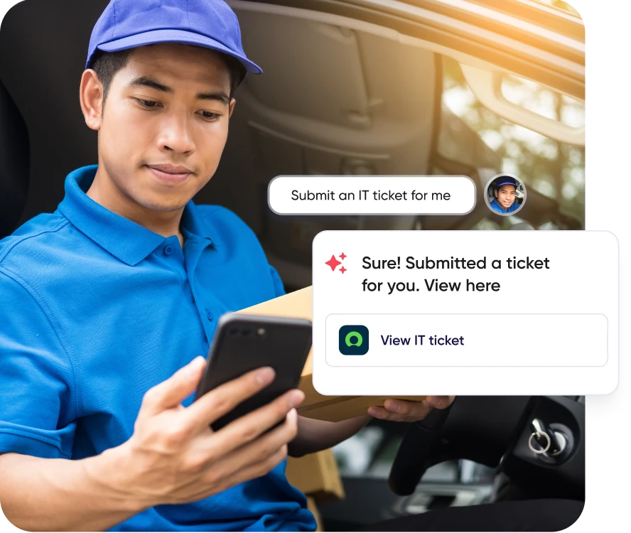 Firstup AI Actions connects to your enterprise systems so employees can complete tasks through conversation, without leaving Firstup.