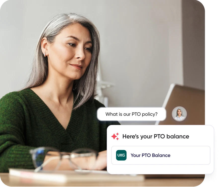 Imagine an assistant who's read every recent document, knows every current policy, and remembers where everything lives. Can search across Workday, ServiceNow, SharePoint, UKG Pro and every system your organization runs on. That's Firstup AI Search. Employees ask questions in their own words and get the actual answer. Instantly. Tailored to their role. Need to check a PTO balance or find an expense status? Done. Follow-up question? It remembers the conversation. It also works where your employees work, searching inside Microsoft Copilot and Teams.