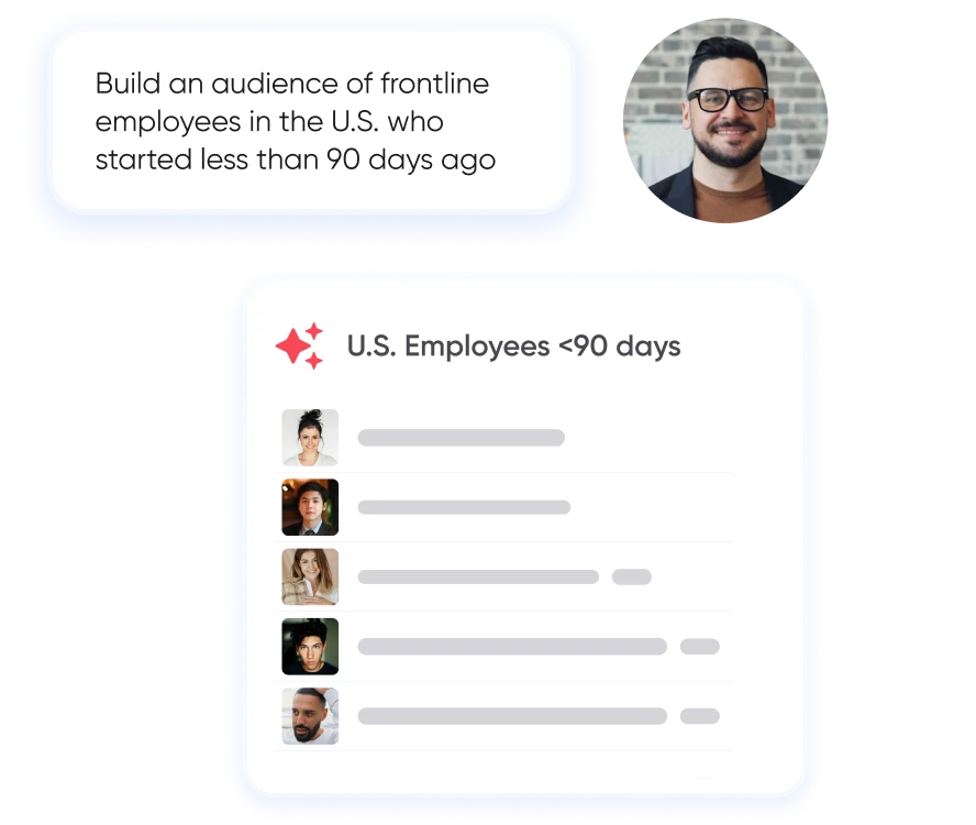 Every employee doesn't need every message. But figuring out exactly who needs what shouldn't take longer than creating the content itself. Imagine a partner who already knew your workforce inside and out and could build the perfect segment the moment you described it? That's Firstup AI Audience Builder. You define the intent. Firstup AI handles the complex targeting.