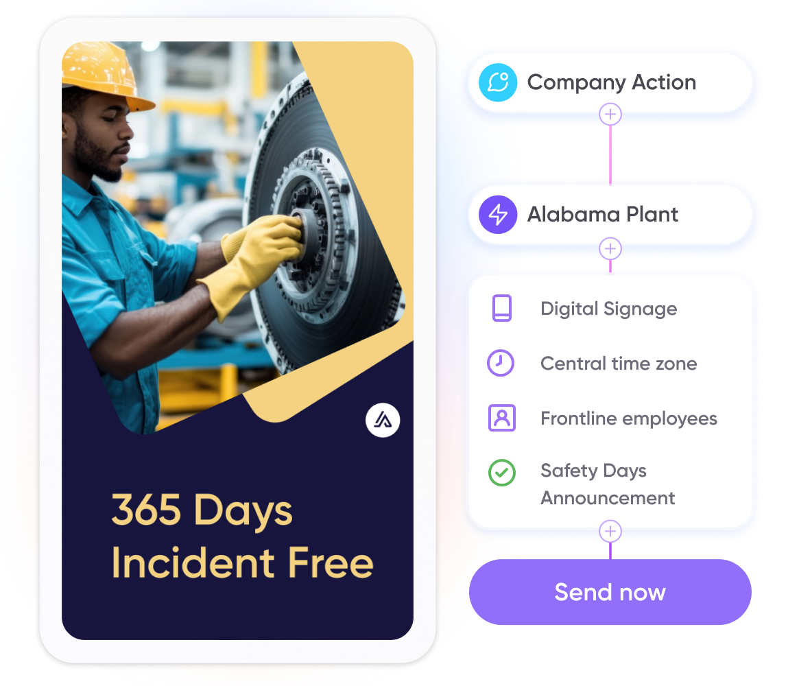 Deliver critical updates straight to the floor, field, or anywhere work gets done—no devices, logins, or apps required.