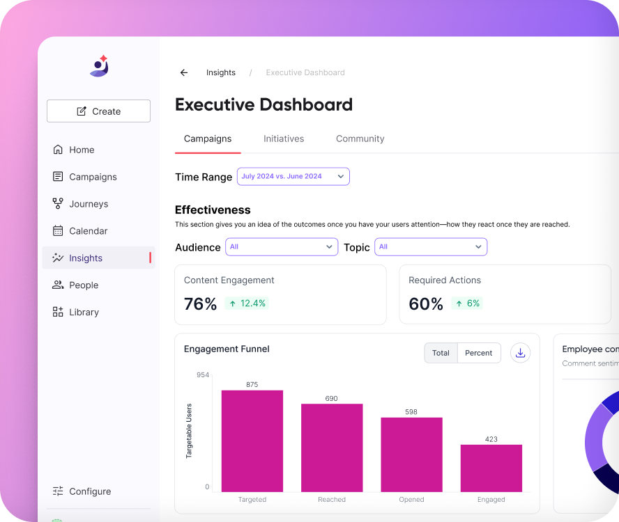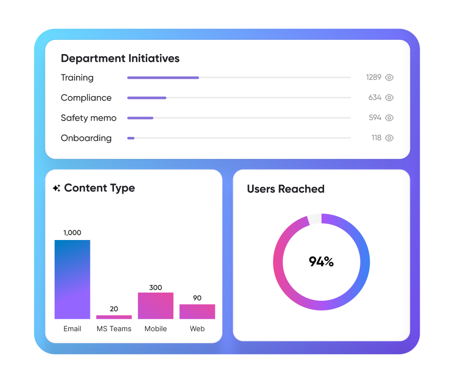 Track engagement trends, spot workforce gaps, and understand what's resonating—and what isn’t—with insights that connect to business impact.