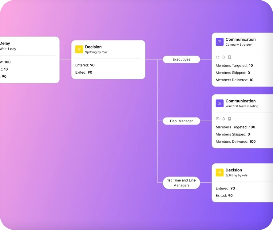 Create sequenced flows with Firstup’s journey orchestration—helping you plan, personalize, and automate employee communication at scale.