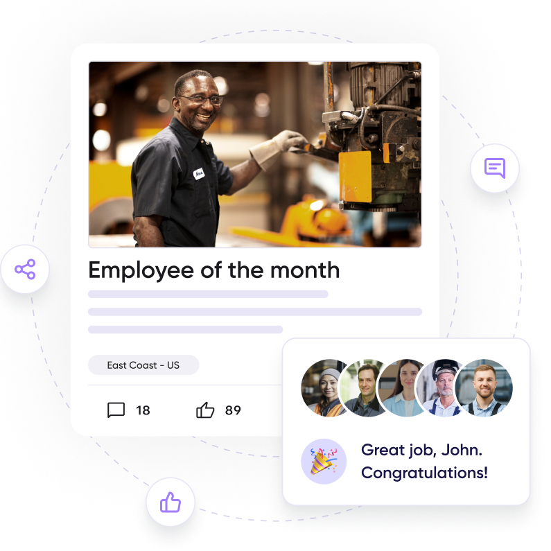 Spotlight individual and team accomplishments in personalized feeds and dedicated sections. Firstup integrates with your existing recognition platforms to ensure every win is seen and rewarded.
