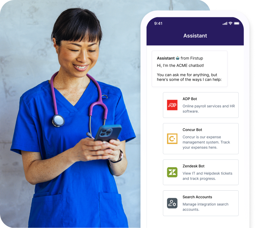 Firstup's smart digital assistant delivers content, tools, and answers directly within the flow of work. No searching or app-switching, just built-in guidance that's there when employees need it.