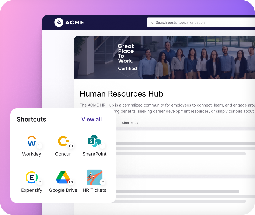 When systems connect instead of competing for attention, teams can work smarter. Cut comms friction by centralizing the information, apps, and resources your employees need to get more done.
